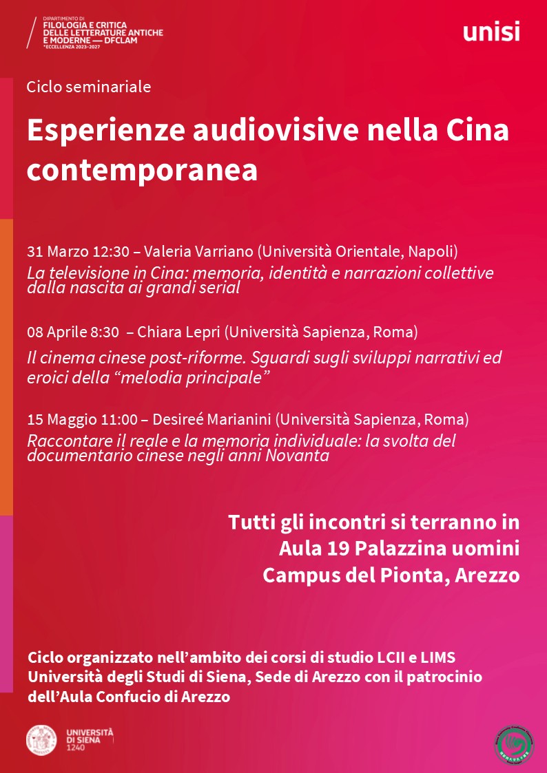 L’Università di Siena, sede di Arezzo, ospiterà un ciclo di incontri dedicato all’esplorazione del panorama audiovisivo cinese contemporaneo. Il percorso, organizzato nell’ambito dei corsi di studio in Lingue per la Comunicazione Interculturale e d’Impresa e Lingue per l’Impresa e lo Sviluppo, offre un approfondimento critico su televisione, cinema e documentario.