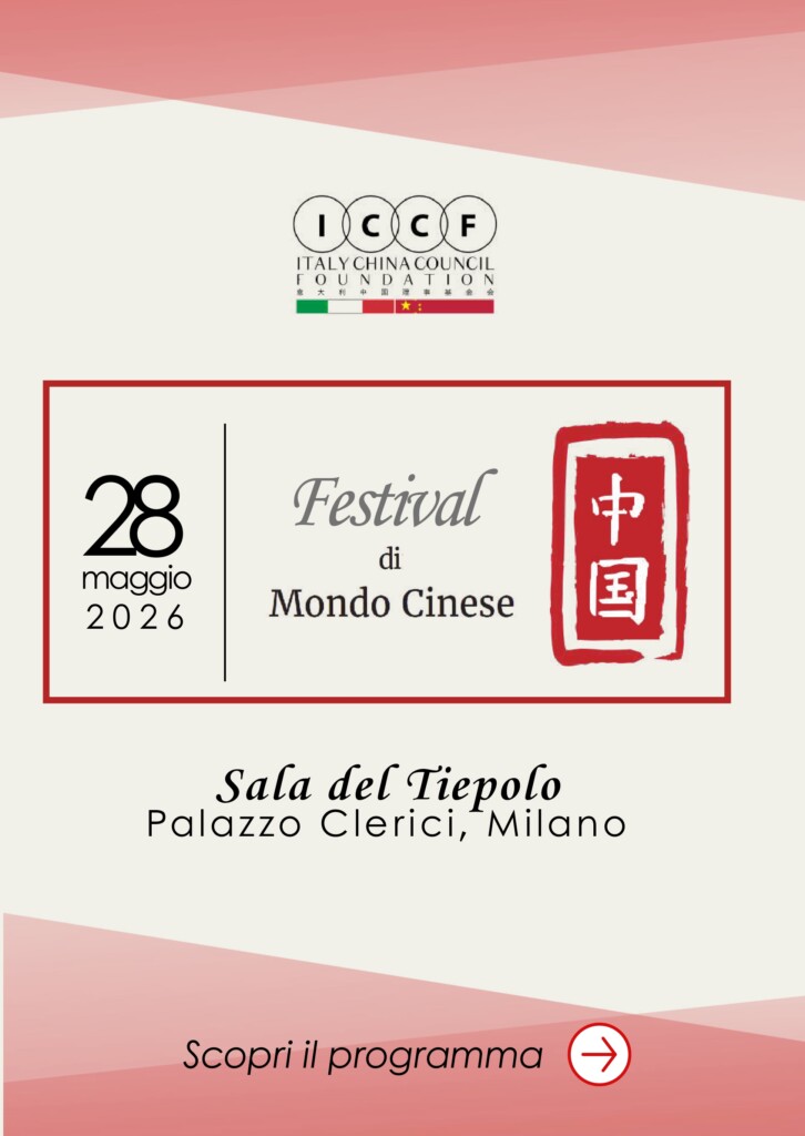 Il 28 maggio 2026, a Milano, nella sede dell’Italy China Council Foundation, Palazzo Clerici, si svolgerà la prima edizione del Festival di Mondo Cinese, storica pubblicazione scientifica italiana, dedicata alla Cina contemporanea. Attraverso incontri e interventi di protagonisti del mondo istituzionale, economico e culturale, il Festival proporrà uno sguardo ampio e trasversale sui temi chiave della Cina odierna: dalla politica all’economia, dalla scienza e tecnologia all’innovazione, fino alla cultura e alla società.