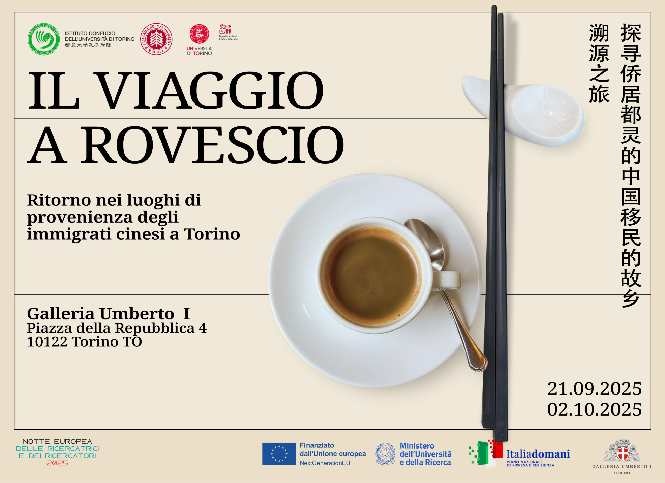 Quest’anno la Sezione Sinologica del Dipartimento di Studi Umanistici dell’Università di Torino partecipa alla Notte Europea delle Ricercatrici e dei Ricercatori in collaborazione con l’Istituto Confucio di Ateneo: presso la Galleria Umberto I verrà presentato un percorso espositivo incentrato sulla valorizzazione dell’esperienza migratoria della comunità cinese della nostra città, in gran parte proveniente dall’area intorno alla città di Wenzhou, nella provincia del Zhejiang. Il progetto vuole fare conoscere e comprendere il percorso migratorio di questi concittadini, affinché non se ne disperda la memoria e si arricchisca il quadro generale dei percorsi migratori tra il XX e il XXI secolo.