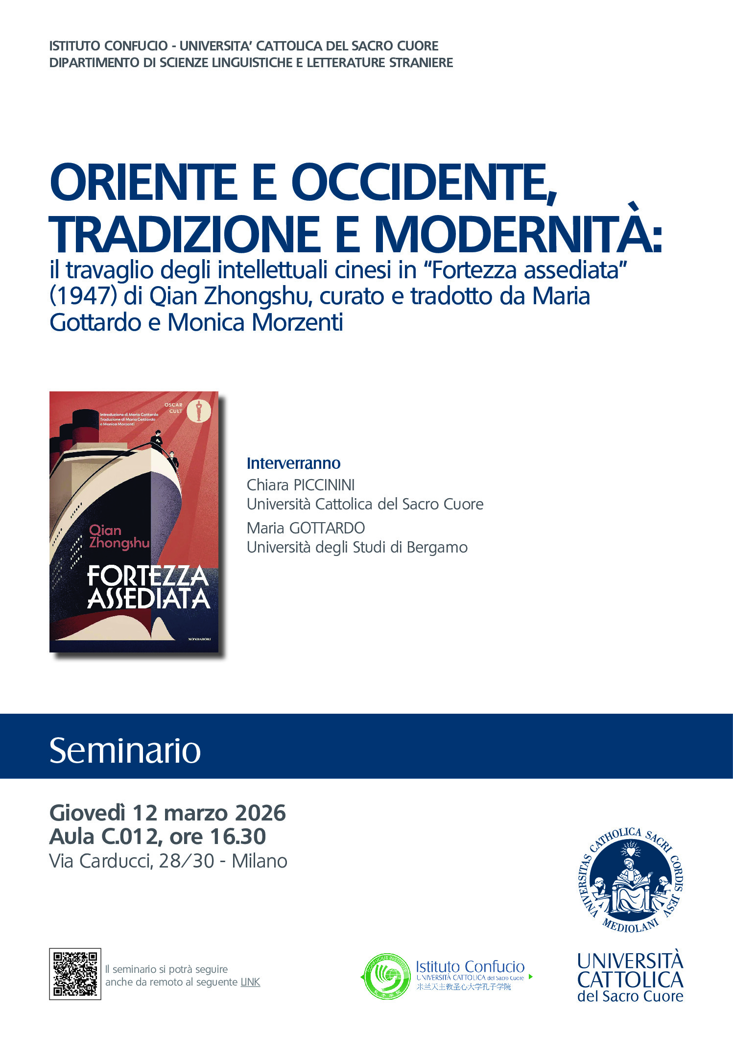 è possibile seguire il seminario da remoto chiedendo il link a istituto.confucio@unicatt.it