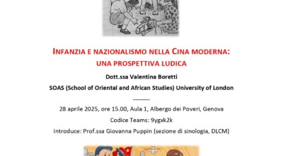 Tradurre il Tianxia – ‘Sotto il cielo’ Martedì 15 aprile 2025, ore 14:50 Aula CM11, Campus Aresu, Università degli studi di Cagliari Il concetto di tianxia, elaborato in Cina oltre […]