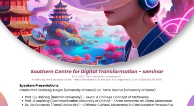 Mixed or Split Realities? A China-Italy Dialogue Southern Centre for Digital Transformation – Seminar PRIN 2022 “From netizens to metazens: Exploring narratives of virtual worlds and civic engagement in the […]